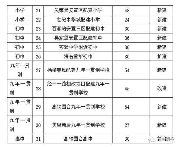 根据需求,三年共计规划(含少量改扩建)教育设施385所,并按照“网格化”管理要求全部落实到街道办事处。其中,幼儿园202所,小学100所,初中47所,九年一贯制28所,高中8所。