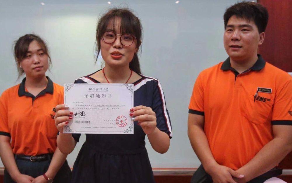 “北语的要求特别严格,口语和英语分数需要很高,我感觉之前的学习都是为了北语。”在家附近,收到录取通知书的刘诗懿显得有些兴奋。她说,自己小时候就喜欢学习外语,希望从事翻译工作。翻译离不开对国外文化的了解,为此,她阅读大量外文书,还会看没有字幕的日语、英语视频。她这次的英语成绩为136分,看到自己的分数,她想都没想就报了北语的日英复语专业。
