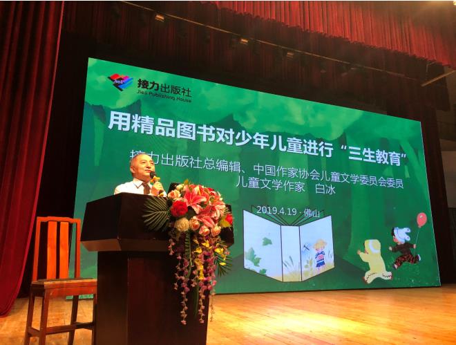 白冰在全国生命教育2019年年会上做了题为《用精品图书对少年儿童进行“三生教育”》的报告(接力出版社供图)